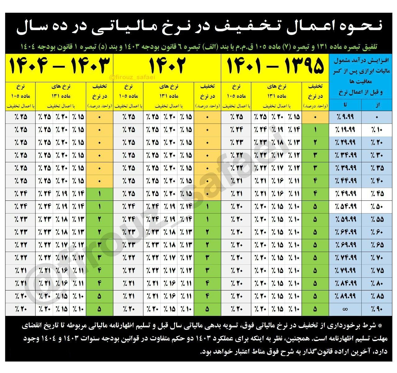 نحوه اعمال تخفیف در نرخ مالیاتی در ده سال